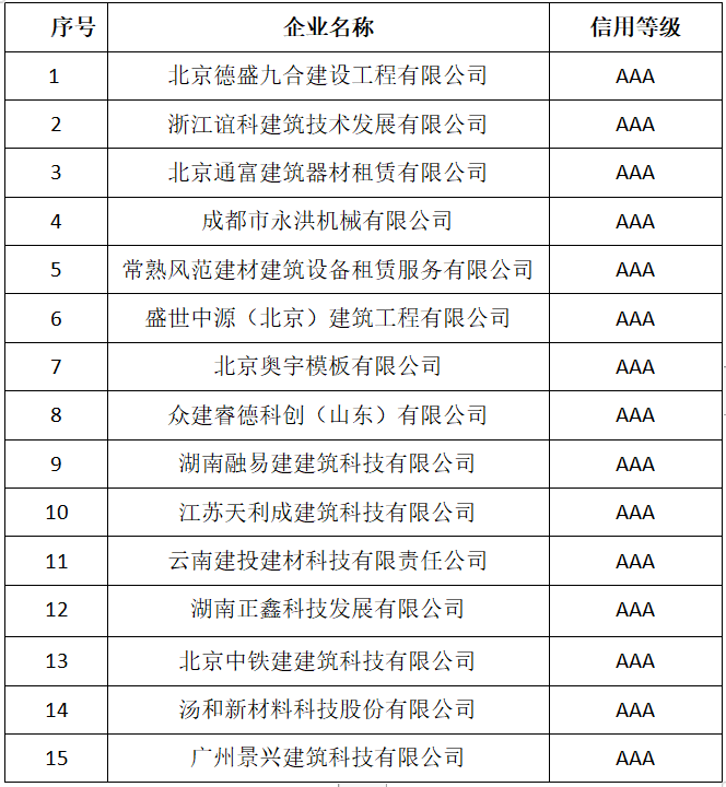 2023年全國模板腳手架行業(yè)企業(yè)信用評價(第一批)企業(yè)名單