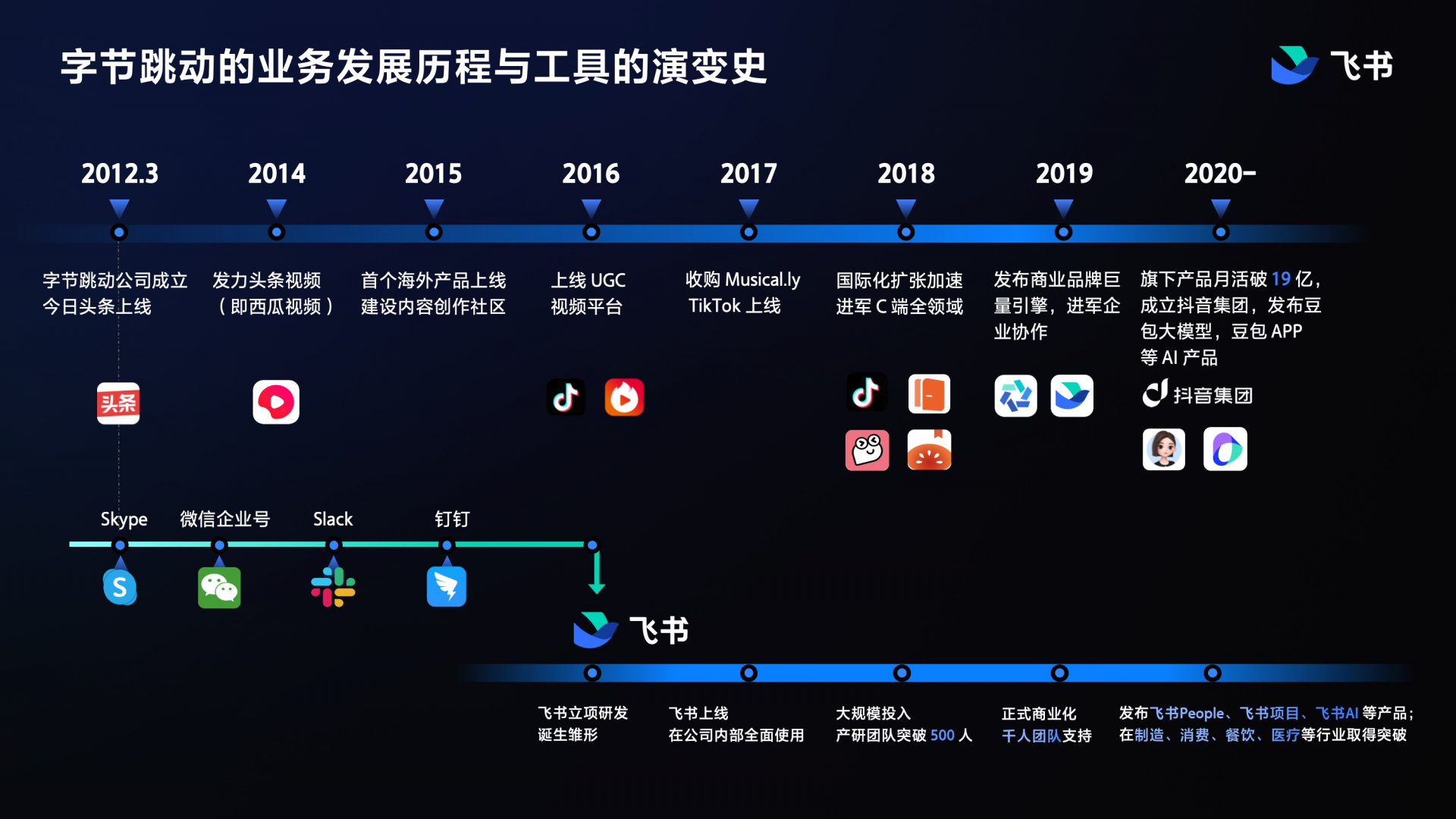 面向未來(lái)的組織,選擇面向未來(lái)的工具。飛書(shū)是字節(jié)跳動(dòng)全員使用的生產(chǎn)力工具。從成立第一天開(kāi)始,字節(jié)跳動(dòng)就在尋找適合未來(lái)組織的生產(chǎn)力工具,甚至在很長(zhǎng)一段時(shí)間里,將國(guó)內(nèi)外知名的生產(chǎn)力工具都用了一遍,依然不滿意。2016 年起,字節(jié)跳動(dòng)以自身為實(shí)驗(yàn)對(duì)象,展開(kāi)了對(duì)未來(lái)組織的思考和探索 —— 飛書(shū),由此誕生。飛書(shū)是 AI 時(shí)代先進(jìn)生產(chǎn)力平臺(tái),提供一站式協(xié)同辦公、組織管理、業(yè)務(wù)提效工具和深入企業(yè)場(chǎng)景的 AI 能力,讓 AI 真能用、真落地。從互聯(lián)網(wǎng)、高科技、消費(fèi)零售,到制造、金融、醫(yī)療健康等,各行各業(yè)先進(jìn)企業(yè)都在選擇飛書(shū),與飛書(shū)共創(chuàng)行業(yè)最佳實(shí)踐。先進(jìn)團(tuán)隊(duì),先用飛書(shū)。