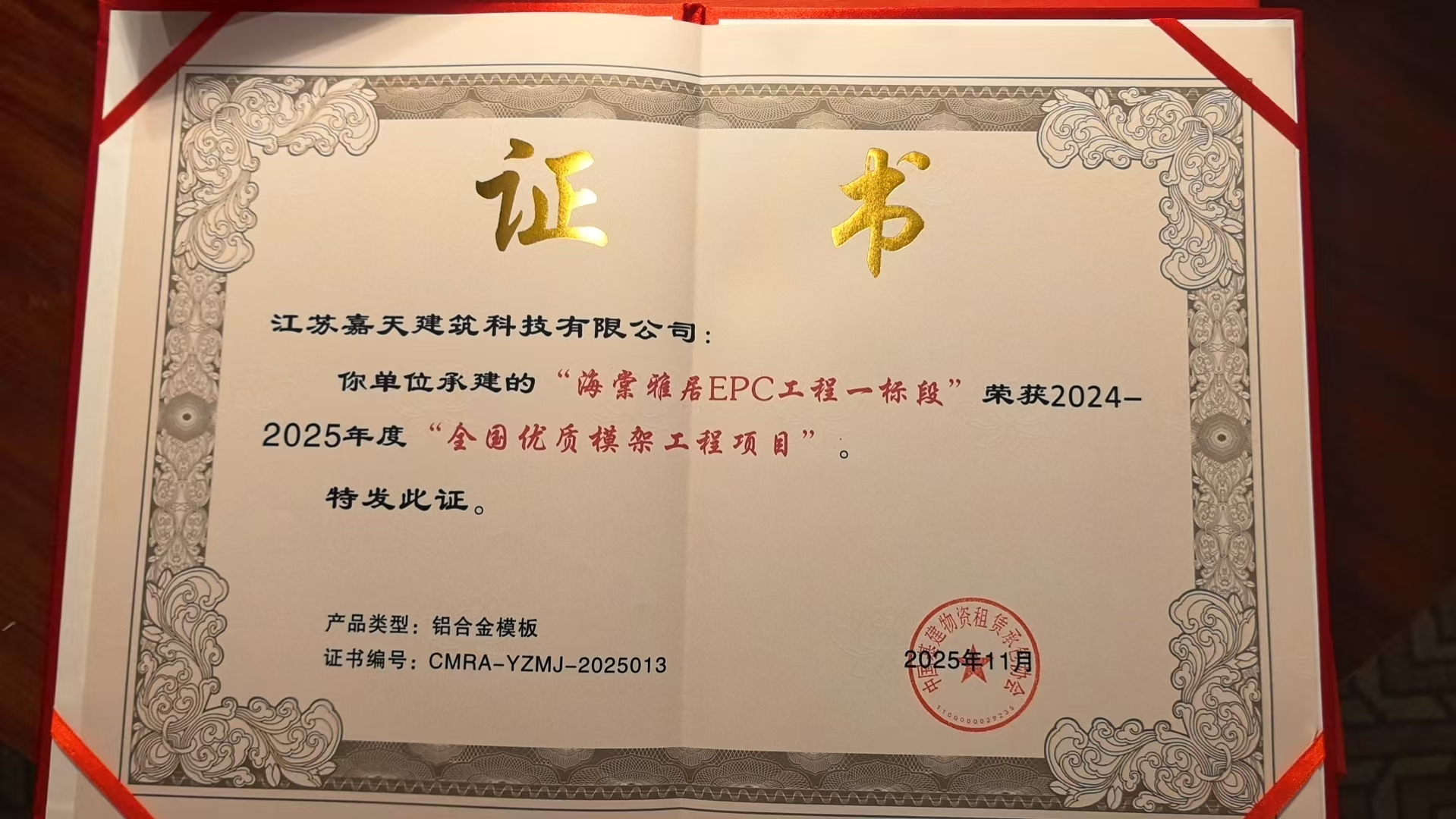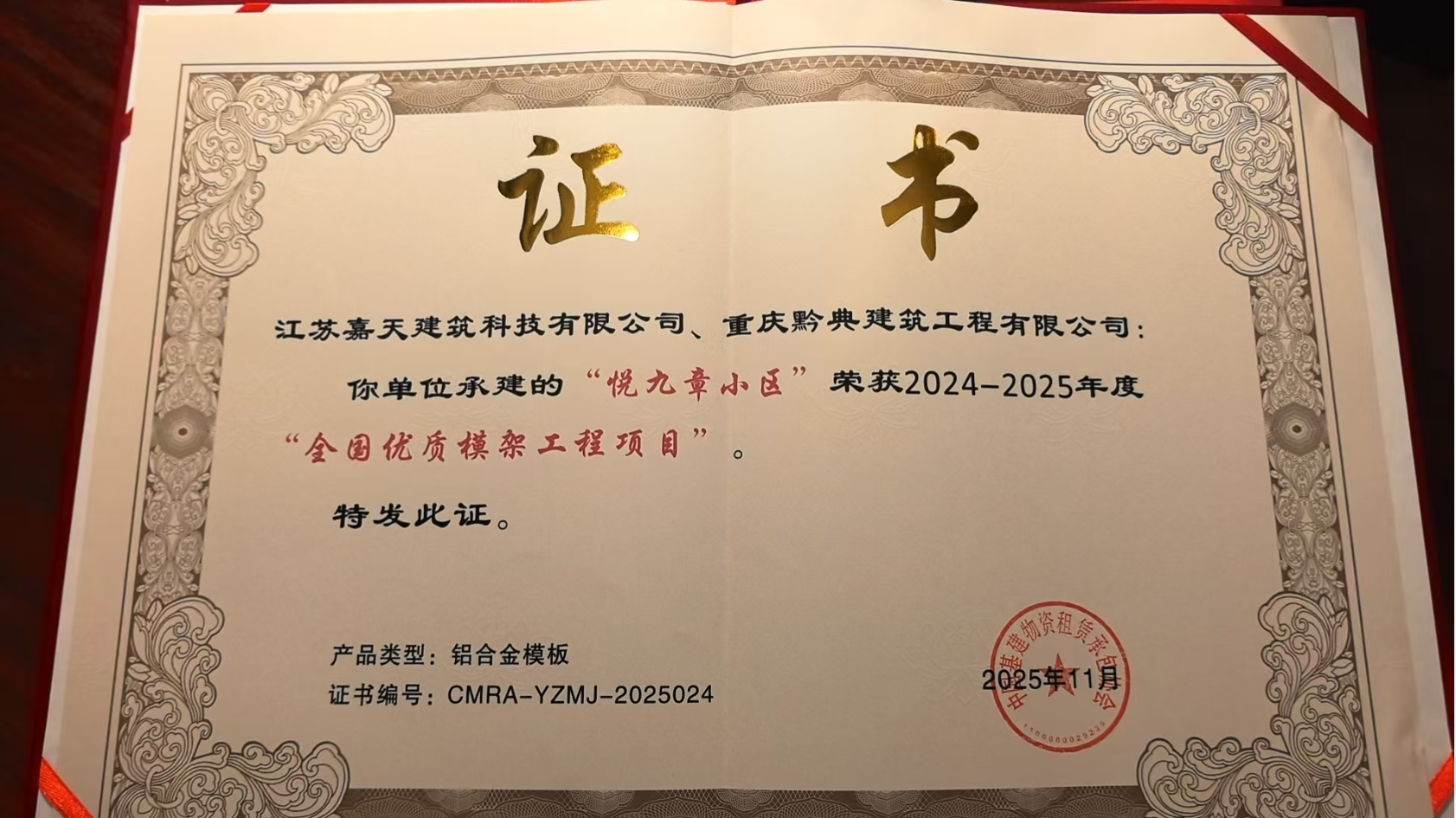 在表彰具有“設(shè)計(jì)優(yōu)、重量輕、質(zhì)量精、管理佳、安全高效、降本增效、綠色建材”特點(diǎn)的優(yōu)質(zhì)工程項(xiàng)目中,天利成企業(yè)“西安邦泰·悅九章”項(xiàng)目及“阜寧海棠雅居”項(xiàng)目憑借創(chuàng)新方案設(shè)計(jì)、高效的服務(wù)品質(zhì)榮獲優(yōu)質(zhì)模架項(xiàng)目獎(jiǎng)。