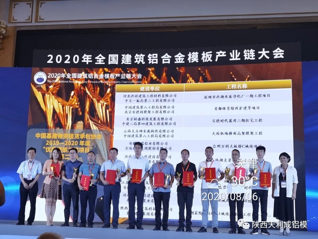 本次大會聚焦鋁模建筑,大力推進“以鋁代木”工作。通過開展政策研究、標(biāo)準(zhǔn)研制、科技成果評定與推廣、技術(shù)交流、產(chǎn)學(xué)研合作、國際交往等活動,助推鋁合金模板行業(yè)高質(zhì)量發(fā)展。天利成企業(yè)董事長張懷安被聘為副會長及年度十大風(fēng)云人物;天利成企業(yè)總經(jīng)理馬光,榮獲杰出人才創(chuàng)新獎;天利成企業(yè)技術(shù)副總王強創(chuàng)作的《建筑鋁合金模板舊板翻新再利用》論文,榮獲優(yōu)秀論文獎,被收錄在建筑產(chǎn)業(yè)鏈大會論文集中。