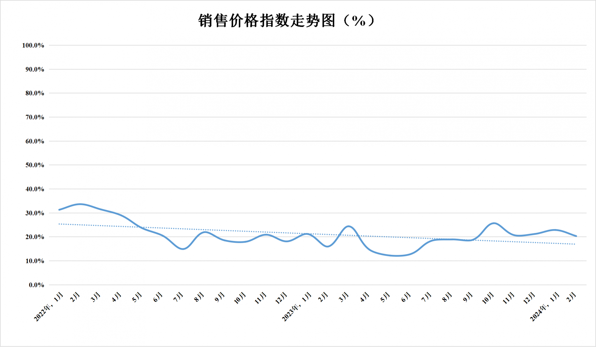 銷售價格指數(shù)為20.3%,較上月下降2.6個百分點,低于臨界點,表明銷售價格水平仍然低位運行。