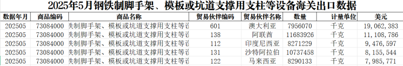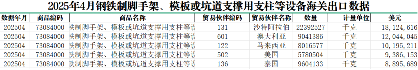權威發(fā)布 | 2025年4-5月中國鋼鐵制腳手架及相關設備出口數據分析