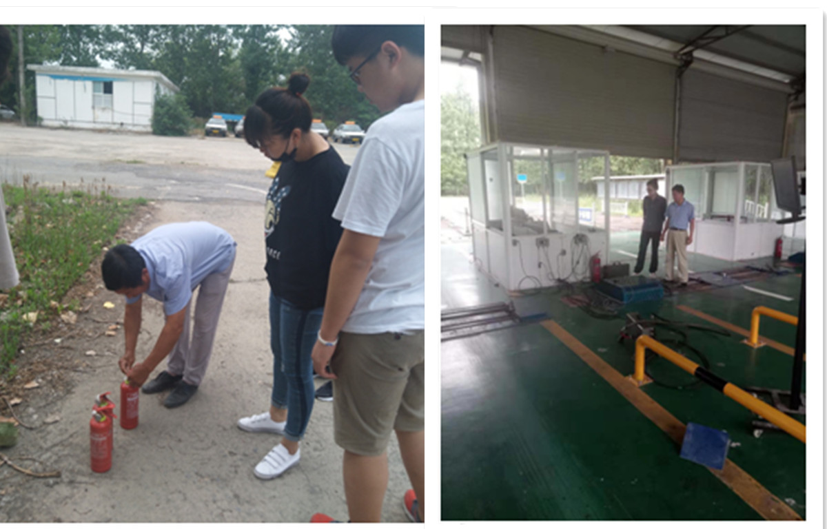 鑫誠駕校指導學員使用滅火器材 檢查上窯檢測線和環(huán)檢線車間