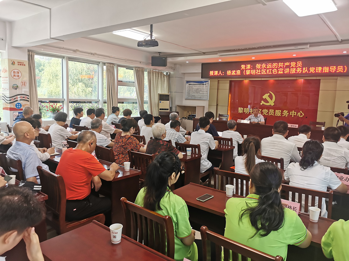 在升國旗環(huán)節(jié),鮮艷的五星紅旗在莊嚴(yán)的國歌聲中冉冉升起,現(xiàn)場所有黨員面向國旗行注目禮,神情莊重肅穆;升旗儀式結(jié)束后,黨員們面對鮮紅的黨旗,一起緊握右拳,懷著激動的心情重溫了入黨誓詞;隨后,社區(qū)黨建指導(dǎo)員以“做永遠(yuǎn)的共產(chǎn)黨員”為題,從“為什么要做永遠(yuǎn)的共產(chǎn)黨員,什么樣才是永遠(yuǎn)的共產(chǎn)黨員,怎么樣能做永遠(yuǎn)的共產(chǎn)黨員”三個方面,結(jié)合社區(qū)黨建工作實際,給大家上了一堂生動深刻的黨課,精彩的內(nèi)容,引得現(xiàn)場陣陣掌聲。