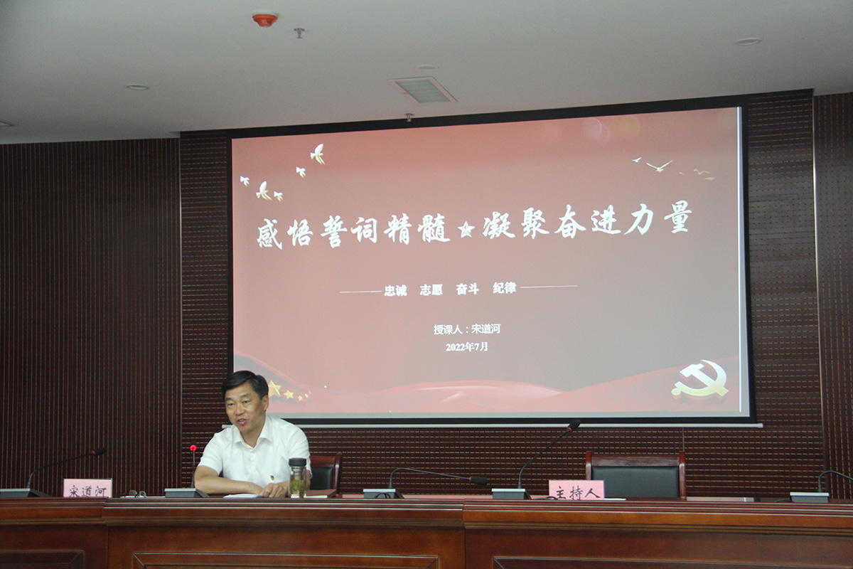 大會首先觀看了黨史學(xué)習(xí)教育片《精神的追尋--偉大建黨精神》,深刻理解中國共產(chǎn)黨的精神之源,從中汲取精神力量,牢記初心使命,敢于攻堅克難,勇于擔(dān)當(dāng)使命,用實際行動把偉大建黨精神繼承下去、發(fā)揚(yáng)光大。黨委書記、董事長宋道河同志以入黨誓詞為主題,圍繞“忠誠、志愿、奮斗、紀(jì)律”四個關(guān)鍵詞,從四個方面與大家交流感悟誓詞精髓,為全體人員上了一堂深刻的黨課,號召大家進(jìn)一步凝聚奮進(jìn)力量,努力在新時代中,敢擔(dān)當(dāng)有作為,以實際行動迎接黨的二十大勝利召開。