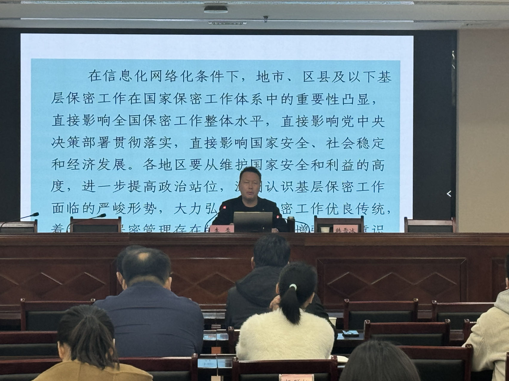 此次培訓(xùn)邀請市委辦保密管理科科長李季給大家授課,李季科長從當(dāng)前竊密與反竊密斗爭形勢、機(jī)關(guān)和單位保密管理存在的問題、當(dāng)前基層保密工作重點任務(wù)、機(jī)關(guān)和單位保密工作基本要求,圍繞保密工作的基本知識、保密日常管理、定密管理、涉密人員管理以及如何避免12種失泄密違規(guī)行為等進(jìn)行了詳細(xì)講解。