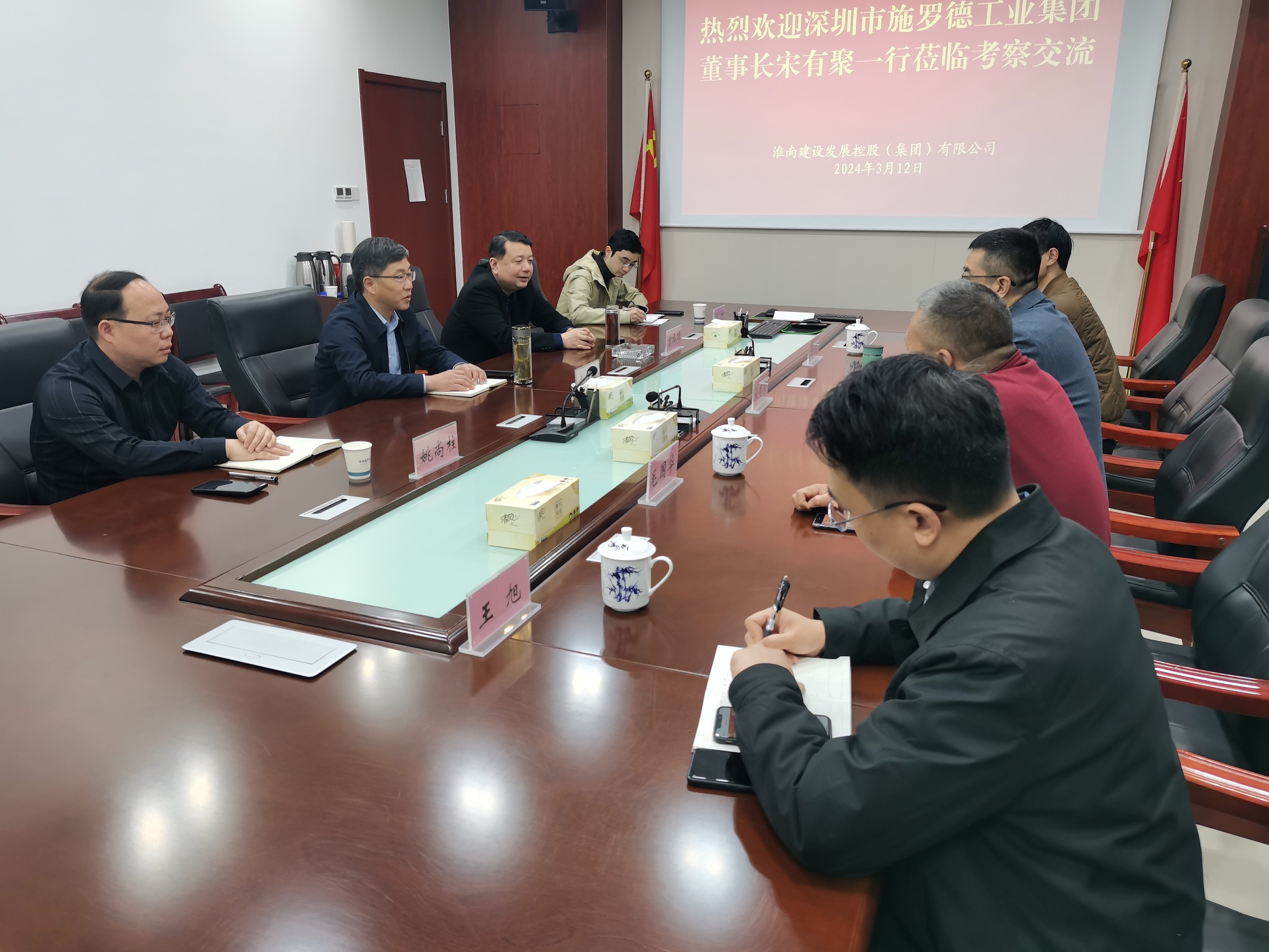 3月12日上午,深圳施羅德工業(yè)集團(tuán)董事長宋有聚一行到訪淮南建發(fā)集團(tuán),與集團(tuán)黨委書記、董事長宋道河,黨委委員、董事、副總經(jīng)理宮福頂,就施羅德工業(yè)集團(tuán)在淮南投資發(fā)展進(jìn)行了深入交流。