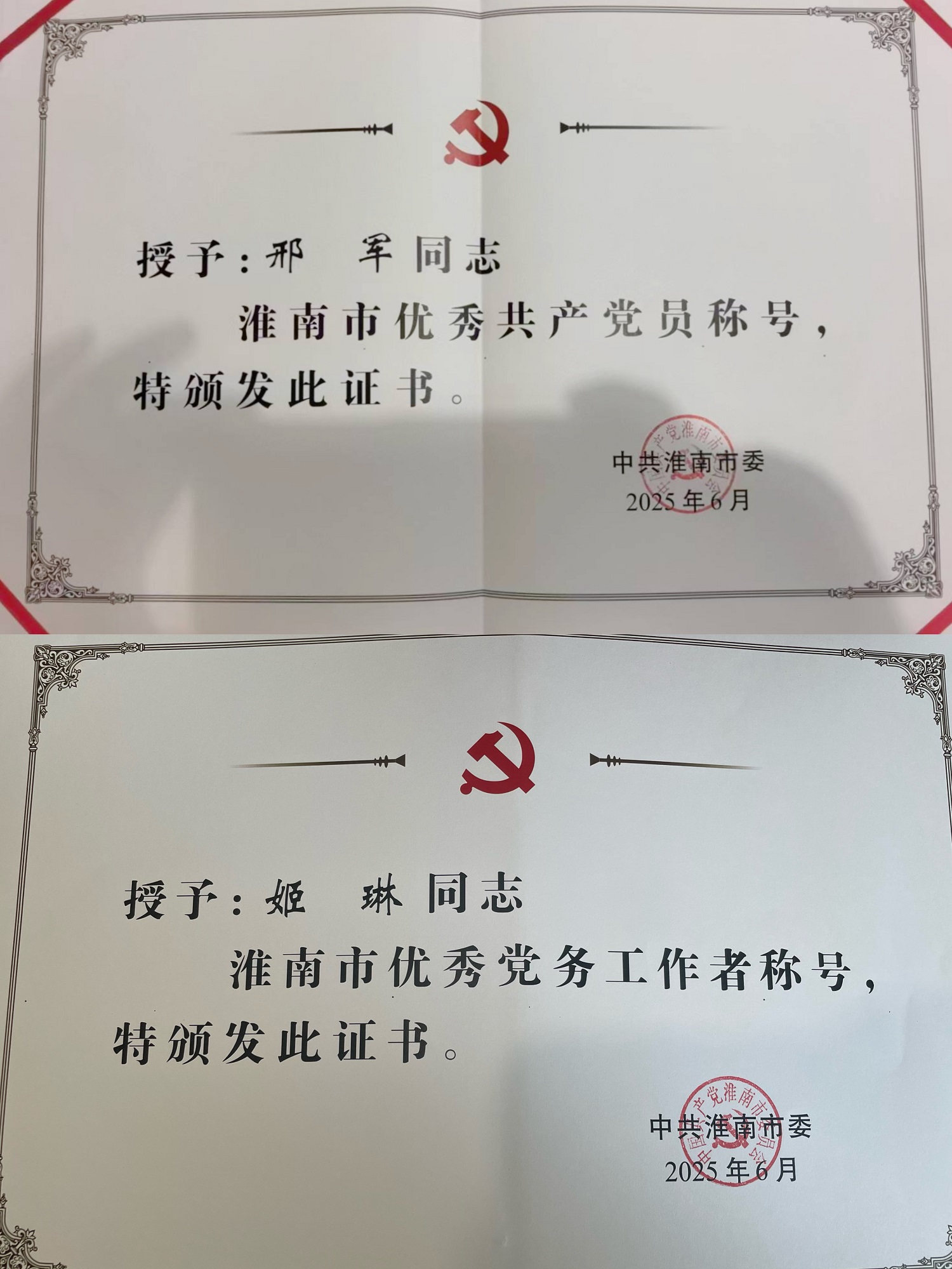 6月30日上午,中共淮南市委召開全市優(yōu)秀共產(chǎn)黨員、優(yōu)秀黨務工作者、先進基層黨組織表彰會議,會上集團公司2名基層黨員受到表彰。其中,建發(fā)市政工程有限公司邢軍同志榮獲“市級優(yōu)秀共產(chǎn)黨員”稱號,建發(fā)規(guī)劃設計研究院有限公司姬琳同志榮獲“市級優(yōu)秀黨務工作者”稱號。