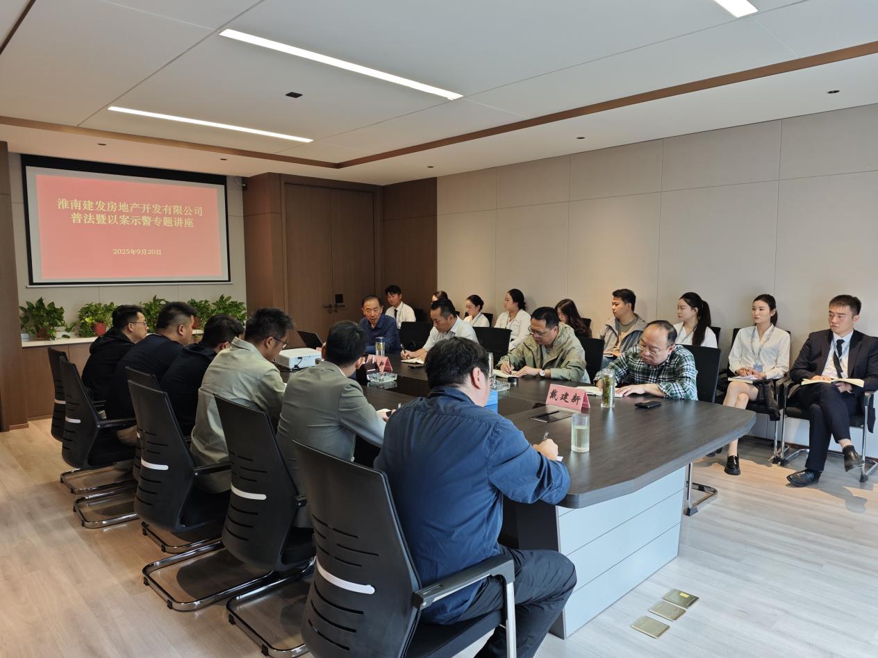 為增強(qiáng)員工法律意識(shí),持之以恒嚴(yán)守紀(jì)律,確保公司法制化規(guī)范化運(yùn)營(yíng)管理,9月20日上午,淮南建發(fā)房地產(chǎn)開(kāi)發(fā)有限公司在如意庭營(yíng)銷中心2樓會(huì)議室組織召開(kāi)普法暨以案示警專題講座,公司董事長(zhǎng)兼總經(jīng)理侯立新主持,副總經(jīng)理繆貴福、項(xiàng)目總經(jīng)理戴建新列席,公司法律顧問(wèn)史愛(ài)國(guó)授課,公司營(yíng)銷、工程部門員工參加。