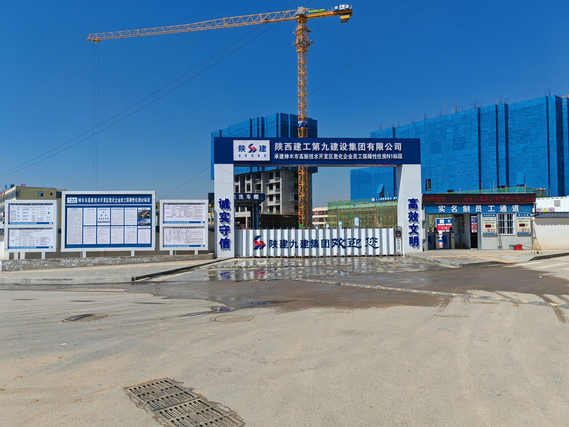 神木市高新技術(shù)開發(fā)區(qū)?;髽I(yè)員工保障性住房N1標(biāo)段,項(xiàng)目位于神木市錦界鎮(zhèn),由陜西建工第九建設(shè)集團(tuán)有限公司承建,項(xiàng)目總占地53.7畝,總建筑面積105600平米,工程總造價(jià)34737.98萬元,其中包含地上26層、地下2層住宅3棟,地上17層、地下2層住宅5棟,地上2層配套鄰里中心2棟,室外工程等。承建單位: -