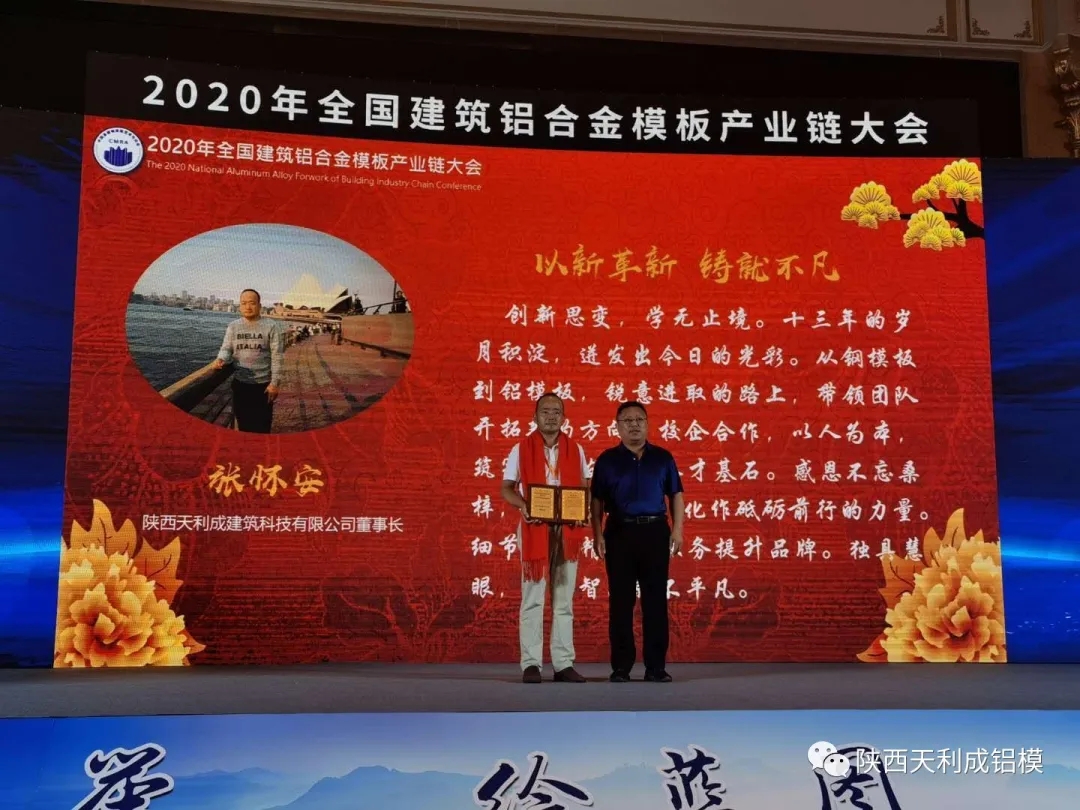 本次大會聚焦鋁模建筑,大力推進“以鋁代木”工作。通過開展政策研究、標(biāo)準(zhǔn)研制、科技成果評定與推廣、技術(shù)交流、產(chǎn)學(xué)研合作、國際交往等活動,助推鋁合金模板行業(yè)高質(zhì)量發(fā)展。天利成企業(yè)董事長張懷安被聘為副會長及年度十大風(fēng)云人物;天利成企業(yè)總經(jīng)理馬光,榮獲杰出人才創(chuàng)新獎;天利成企業(yè)技術(shù)副總王強創(chuàng)作的《建筑鋁合金模板舊板翻新再利用》論文,榮獲優(yōu)秀論文獎,被收錄在建筑產(chǎn)業(yè)鏈大會論文集中。