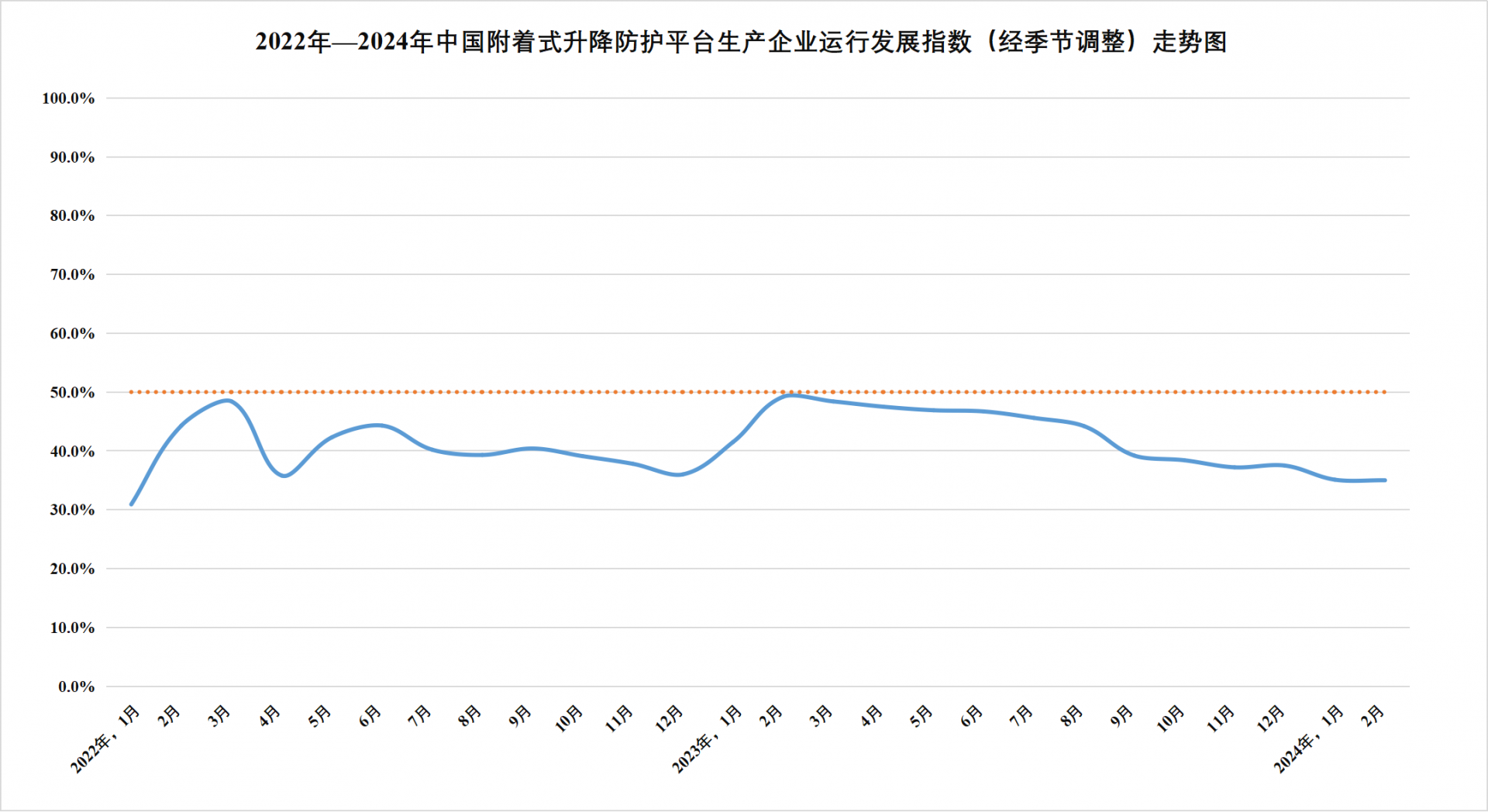權(quán)威發(fā)布|2024年2月份中國附著式升降防護(hù)平臺行業(yè)運行發(fā)展指數(shù)35.0%
